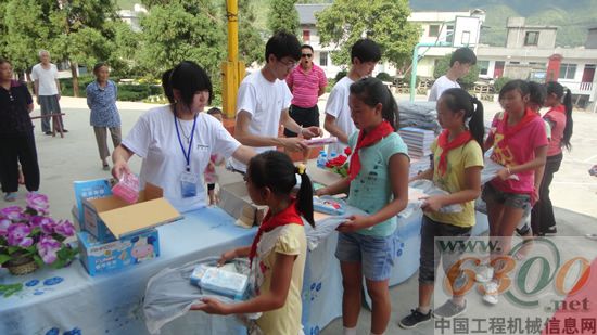 中聯(lián)重科給小學生們贈送書包、文具、練習本