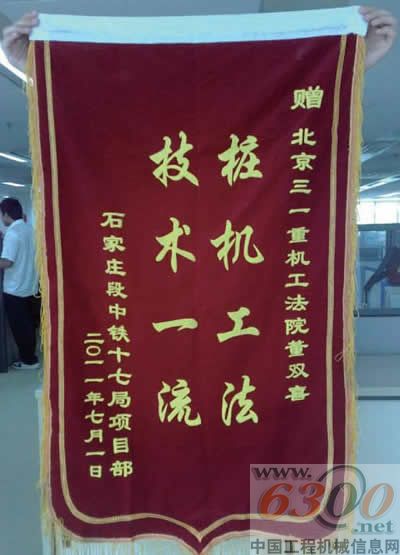 2011年7月1日,客戶和京石鐵路石家莊段中鐵十七局項(xiàng)目部負(fù)責(zé)人來(lái)到了北京三一,為公法研究院工程師董雙喜送來(lái)了一面錦旗?!叭坏氖┕ば室呀?jīng)大大超過(guò)了國(guó)外的標(biāo)桿產(chǎn)品,三一不愧為民族品牌的驕傲!”客戶李先生自豪的對(duì)記者說(shuō)。