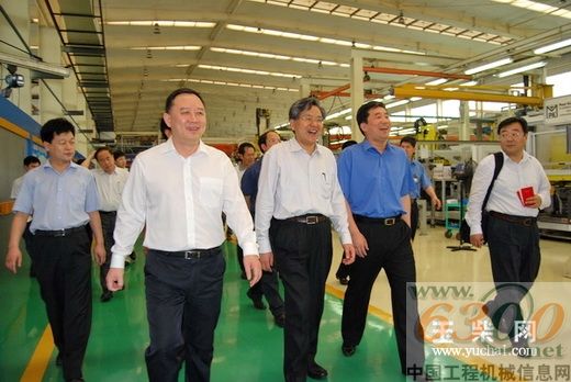 謝國明(前排右三)一行參觀玉柴重機裝配生產(chǎn)線