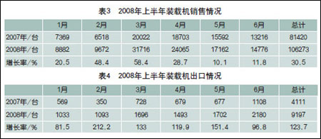 2008上半年裝載機銷售及出口情況