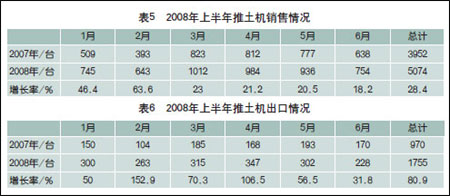 2008上半年推土機銷售及出口情況