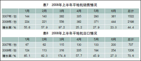 2008上半年平地機銷售及出口情況