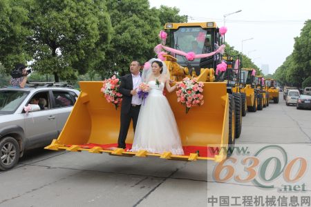 擁有一次浪漫的婚禮,是每一對(duì)新人共同的愿望。制造一場(chǎng)與眾不同的浪漫婚禮,不但會(huì)讓人眼前一亮,更會(huì)讓人對(duì)這樣的婚禮大家贊賞。怎樣才能與眾不同呢?2012年5月2日,徐工科技湘北代理商岳陽中偉工程機(jī)械有限公司總經(jīng)理童志偉用裝載機(jī)車隊(duì)迎娶新娘,在長沙引起了不小的轟動(dòng),徐工裝載機(jī)不僅成就了童志偉總經(jīng)理的財(cái)富夢(mèng)想,同時(shí)也見證了他人生中最美好的幸福時(shí)刻。