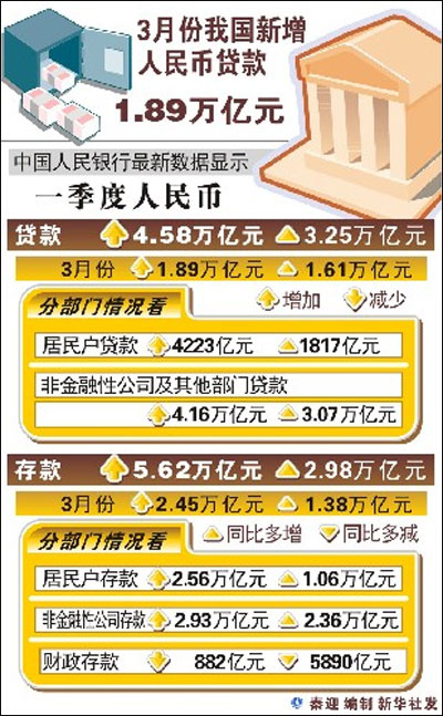 據(jù)記者統(tǒng)計,截至1季度末,人民幣新增信貸已達(dá)到4.58萬億,逼近去年全年的增加額。其中,不僅3月份的單月新增信貸再創(chuàng)歷史新高,M2增速也破了歷史記錄。業(yè)內(nèi)人士預(yù)計,4月份,5萬億的底線將被毫無懸念地輕松突破。