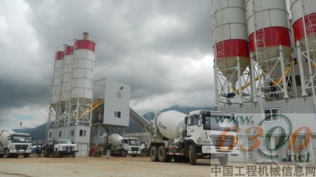 委當地時間上午11時,隨著“出料”一聲令下,兩臺拌合站下料斗同時打開,拌合好的混凝土開始向現(xiàn)場幾十臺白色水攪車裝料。工地上其他的徐工產品:混凝土泵車、自卸車、補給車、裝載機、壓路機等也相繼啟動,合力作業(yè)。