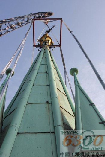 在實(shí)際吊裝之前需要進(jìn)行大量準(zhǔn)備工作,Schares 團(tuán)隊(duì)不得不在令人目眩的高度下執(zhí)行一系列極其精確的任務(wù)。在團(tuán)隊(duì)開始為拆卸尖頂進(jìn)行實(shí)際準(zhǔn)備工作之前,首先要拆下風(fēng)向標(biāo),對(duì)其進(jìn)行正確固定,然后安全地將其放到地面上。為確保平穩(wěn)吊裝,這一經(jīng)驗(yàn)豐富的團(tuán)隊(duì)采用了帶有圓形吊索和銷子的矩形吊架,將其定位在尖頂上方,以便團(tuán)隊(duì)中的裝配工將尖頂固定在吊架上。這一工作完成后,起重機(jī)操作員 Christian Emmerich 使用約 3 噸(3.3 美噸)的張力拉動(dòng)尖頂,確保尖頂?shù)轿?。然后,裝配工方能執(zhí)行耗時(shí)最長(zhǎng)的最終任務(wù):他們要拆卸尖頂上事先擰松的 400 個(gè)螺栓,這些螺栓是用于替代原安裝鉚釘?shù)摹K新菟ú鹦锻戤吅?,Christian Emmerich 最終以 26 米(85.3 英尺)的作業(yè)半徑提起了尖頂?!斑@一過程需要恰到好處的接觸角度,因?yàn)榧忭斣诘跹b過程中不能出現(xiàn)任何傾斜,以避免其發(fā)生危險(xiǎn)的‘彎曲’。AC 350/6 的精確控制保證了這一過程的順利進(jìn)行,”該類起重作業(yè)中擁有豐富經(jīng)驗(yàn)的起重機(jī)操作員如此評(píng)價(jià)道。安放尖頂時(shí),起重機(jī)降低了其臂架結(jié)構(gòu),將作業(yè)半徑增至 32 米(105 英尺),使其能夠安全地將尖頂放到地面 – 教堂的牧師觀看了整個(gè)作業(yè)過程,親眼目睹了這一奇跡的發(fā)生,許多好奇的路人甚至為此拍手稱奇。