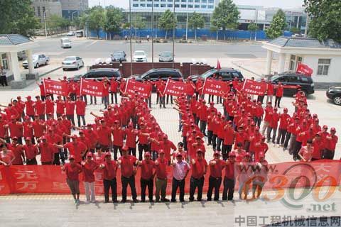 服務(wù)萬(wàn)里行出征儀式上,百余名服務(wù)人員排出三一LOGO造型