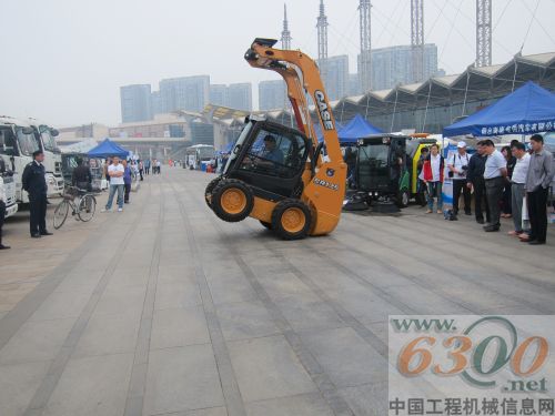 凱斯滑移裝載機(jī)進(jìn)行操作演示,在小范圍內(nèi)可快速旋轉(zhuǎn),充分顯示了靈巧、輕便的特性