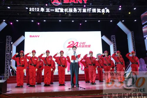 2012年6月19日,國際SOS政府及跨國企業(yè)總監(jiān)徐兵、起重機(jī)營銷公司總經(jīng)理李練文為三一起重機(jī)首批24小時吊裝救援志愿隊隊員莊嚴(yán)授徽,并接受其宣誓。擲地有聲的誓言,贏得行業(yè)領(lǐng)導(dǎo)、媒體及客戶朋友一致贊譽(yù),現(xiàn)場掌聲如潮。至此,三一起重機(jī)24小時吊裝救援計劃正式開始啟動。