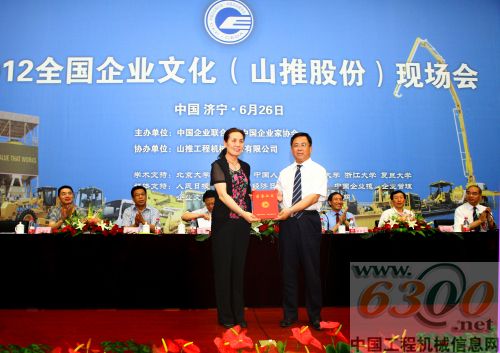 6月26日,由中國(guó)企業(yè)聯(lián)合會(huì)、中國(guó)企業(yè)家協(xié)會(huì)主辦,山推股份公司承辦的2012全國(guó)企業(yè)文化(山推股份)現(xiàn)場(chǎng)會(huì)在山東省濟(jì)寧市隆重舉行。會(huì)上,山推工程機(jī)械股份有限公司被授予“2012年全國(guó)企業(yè)文化示范基地”。中國(guó)企業(yè)聯(lián)合會(huì)執(zhí)行副會(huì)長(zhǎng)尹援平,北京大學(xué)副校長(zhǎng)張國(guó)有,國(guó)務(wù)院國(guó)資委研究局副局長(zhǎng)張濤,中國(guó)企業(yè)聯(lián)合會(huì)企業(yè)文化建設(shè)委員會(huì)秘書(shū)長(zhǎng)遲惠玲,山東重工集團(tuán)黨委副書(shū)記、紀(jì)委書(shū)記徐大立,濟(jì)寧市市委宣傳部副部長(zhǎng)段向陽(yáng),公司董事長(zhǎng)、黨委書(shū)記張秀文,黨委副書(shū)記、紀(jì)委書(shū)記孫學(xué)科等領(lǐng)導(dǎo)出席了現(xiàn)場(chǎng)會(huì)。