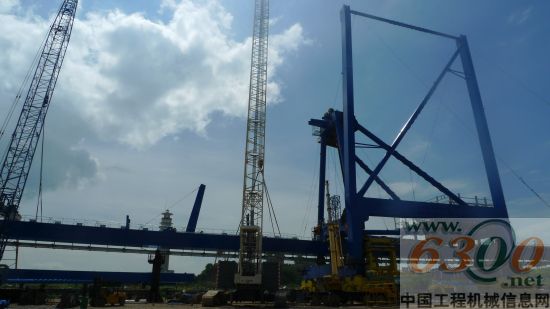 7月份的福建省漳州市艷陽高照、海風(fēng)習(xí)習(xí),在諾爾起重設(shè)備 (中國) 有限公司的港口起重設(shè)備組裝工地上,一群裝配工人及數(shù)臺(tái)工程機(jī)械設(shè)備圍繞在一臺(tái)龐然大物——諾爾STS系列岸橋式起重機(jī)的周圍,正在對其進(jìn)行忙碌有序地組裝。在作業(yè)的設(shè)備中有一臺(tái)來自 特雷克斯拓能(山東)重機(jī)制造有限公司(以下簡稱特雷克斯拓能)的Powerlift8000履帶起重機(jī)(起重量為360噸),該設(shè)備于2011年引進(jìn),是諾爾工廠迄今為止使用的起吊能力最大的起重設(shè)備。