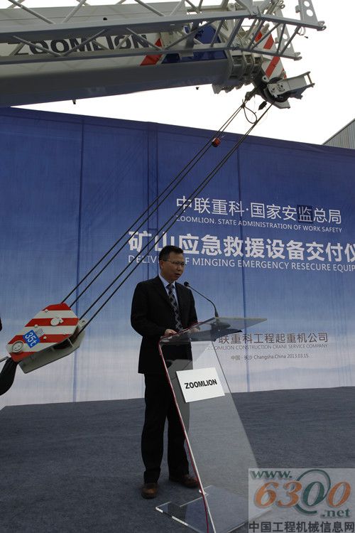 交付儀式上,中聯(lián)重科工程起重機(jī)公司副總經(jīng)理蘇敏致辭。他稱,中聯(lián)重科作為國(guó)家指定的越野輪胎起重機(jī)行業(yè)標(biāo)準(zhǔn)制定企業(yè),能夠被國(guó)家應(yīng)急救援央企和區(qū)域隊(duì)中所有救援大隊(duì)所認(rèn)可,彰顯了中聯(lián)重科自身不凡的實(shí)力以及在客戶心中良好的口碑。中聯(lián)重科也一直以責(zé)任、感恩回報(bào)社會(huì),并以此作為研發(fā)產(chǎn)品的動(dòng)力。2008年抗擊冰災(zāi)、512汶川地震,玉樹地震…在這些戰(zhàn)斗中,中聯(lián)重科一直勇?lián)鐣?huì)責(zé)任,走在救援隊(duì)伍的最前列。如今,這些35T越野輪胎起重機(jī),又將投身到國(guó)家應(yīng)急救援工作中,我們感到無比自豪和榮耀。