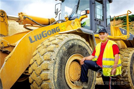 圖為機(jī)械操作手Csaba與他操作的CLG877III裝載機(jī)。