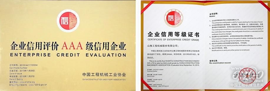 大會(huì)為首批通過評審并報(bào)商務(wù)部信用工作辦公室、國資委行業(yè)協(xié)會(huì)聯(lián)系辦公室備案的14家行業(yè)企業(yè)頒發(fā)了“AAA級(jí)信用等級(jí)”證書及牌匾。山推信用等級(jí)被評價(jià)為為AAA級(jí),并被授予了證書和獎(jiǎng)牌。中國工程機(jī)械工業(yè)協(xié)會(huì)副會(huì)長、會(huì)議認(rèn)為:2013年是全面貫徹落實(shí)黨的十八大精神開局的第一年。我國工程機(jī)械行業(yè)積極應(yīng)對市場變化,苦練內(nèi)功,加快轉(zhuǎn)型升級(jí),經(jīng)受住了市場波動(dòng)的考驗(yàn)。全行業(yè)在轉(zhuǎn)變增長方式、調(diào)整產(chǎn)業(yè)結(jié)構(gòu),提高盈利能力,推進(jìn)國際化進(jìn)程等方面取得了明顯成效。常務(wù)理事、理事單位負(fù)責(zé)人、部分會(huì)員單位的代表、各相關(guān)媒體代表200多人參加了本次會(huì)議。