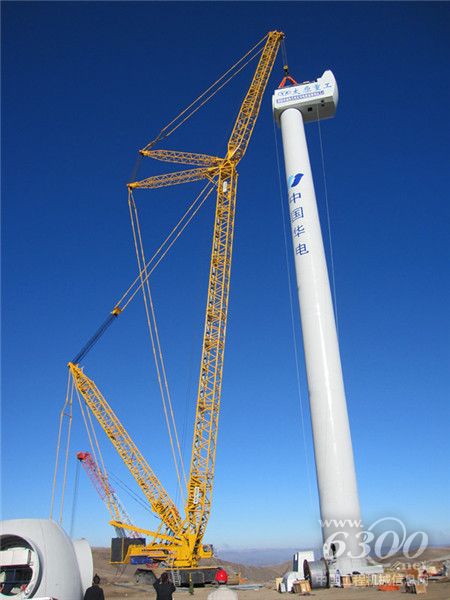 內(nèi)蒙古碧藍(lán)的天空下,徐工XGC16000金色的起重機臂高聳于藍(lán)天,顯得十分耀眼。繼XGC16000在河北成功吊裝5MW風(fēng)電之后,近日,徐工XGC16000再擔(dān)大型風(fēng)電吊裝重任,在內(nèi)蒙古風(fēng)電場進行5MW風(fēng)電吊裝。