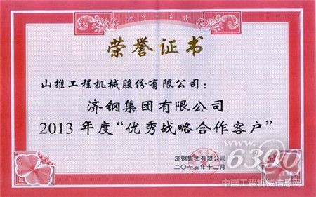 近日,公司榮獲濟(jì)鋼集團(tuán)有限公司2013年度“優(yōu)秀戰(zhàn)略合作客戶”榮譽(yù)證書(shū)。