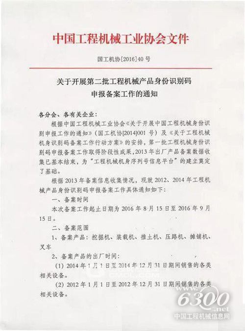 關(guān)于開展第二批工程機(jī)械產(chǎn)品識別碼申報(bào)備案工作的通知