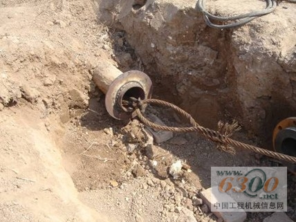 4)使鋼絲繩處于無(wú)載荷狀態(tài),移開(kāi)機(jī)器,拆卸連接件,將機(jī)器分成三個(gè)部分,依次從鋼絲繩遠(yuǎn)端移出。此時(shí)可看到新PE管線一端出現(xiàn)在機(jī)器工作坑內(nèi),工程圓滿結(jié)束。