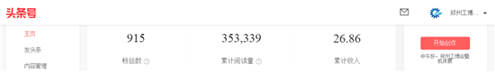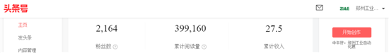 目前鄭州工博會(huì)3個(gè)頭條官方賬號(hào)總粉絲6834人,累計(jì)總閱讀近150萬,以中西部制造業(yè)內(nèi)容為基礎(chǔ),輻射全國裝備制造業(yè),我們現(xiàn)在就是行業(yè)內(nèi)做的最好的,今后也會(huì)做得更好!努力打造國內(nèi)裝備制造業(yè)行業(yè)平臺(tái)!