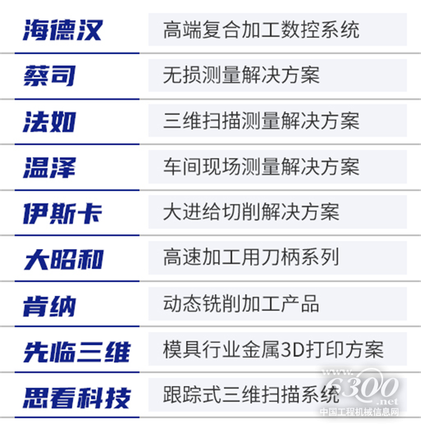 代表展商:馬扎克、牧野、哈斯、斗山、友佳、米克朗、尼古拉斯、海天精工、北京精雕、臺群精機