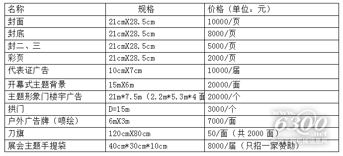 展會現(xiàn)場廣告位/會刊收費標(biāo)準(zhǔn)