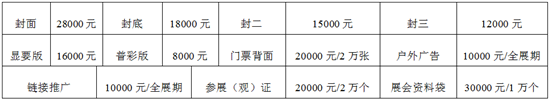 鏈接推廣10000元/全展期參展(觀)證20000元/2萬個(gè)展會(huì)資料袋30000元/1萬個(gè)