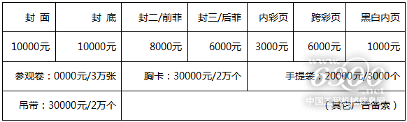 ● 電子版會刊廣告:為了配合展商在展覽期間宣傳及讓客戶了解展商并在會后能與之溝通聯(lián)系,組委會將精心編印大會會刊,會刊規(guī)格:145mm×210mm