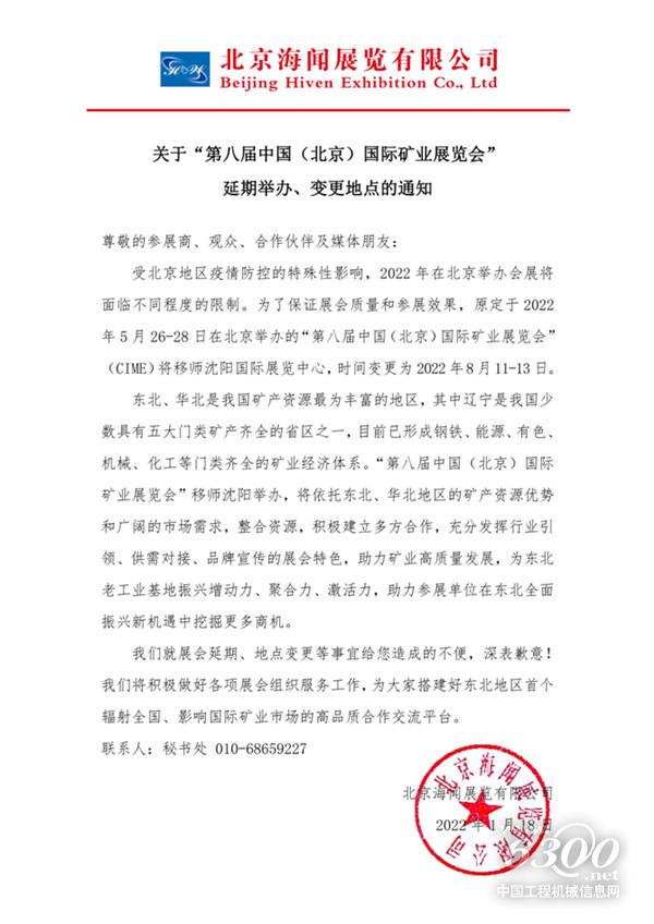 附:關(guān)于“第八屆中國(guó)(北京)國(guó)際礦業(yè)展覽會(huì)”延期舉辦、變更地點(diǎn)的通知