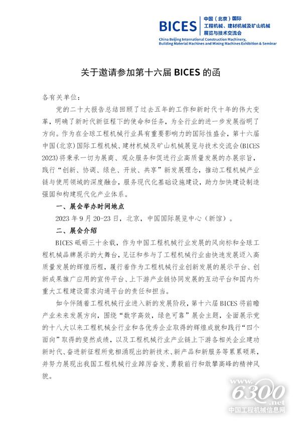 黨的二十大報(bào)告總結(jié)回顧了過去五年的工作和新時(shí)代十年的偉大變革,明確了新時(shí)代新征程下的使命和任務(wù),為全行業(yè)的進(jìn)一步發(fā)展指明了方向。作為在全球工程機(jī)械行業(yè)具有重要影響力的國(guó)際性盛會(huì),第十六屆中國(guó)(北京)國(guó)際工程機(jī)械、建材機(jī)械及礦山機(jī)械展覽與技術(shù)交流會(huì)(BICES 2023)將秉承一切為展商、觀眾服務(wù)和促進(jìn)行業(yè)高質(zhì)量發(fā)展的辦展宗旨,踐行“創(chuàng)新、協(xié)調(diào)、綠色、開放、共享”新發(fā)展理念,推動(dòng)工程機(jī)械產(chǎn)業(yè)鏈與使用領(lǐng)域的深度融合,服務(wù)現(xiàn)代化基礎(chǔ)設(shè)施建設(shè),助力加快建設(shè)制造強(qiáng)國(guó)和構(gòu)建現(xiàn)代化產(chǎn)業(yè)體系。