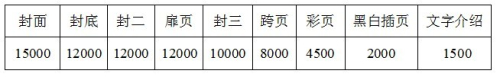 本屆大會(huì)《會(huì)刊》一書為大32開(140mm×210mm)進(jìn)口銅板紙彩色精印,圖文并茂,它將盡列展會(huì)詳情,展商及產(chǎn)品介紹,是本次大會(huì)對(duì)外宣傳,行業(yè)交流,資料查閱獨(dú)一無二的宣傳資料,并且具有長(zhǎng)期的廣告效應(yīng)。其價(jià)格如下: