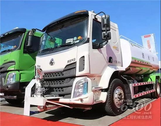 以國(guó)六和天然氣動(dòng)力為主題的柳汽乘龍,帶了4臺(tái)乘龍卡車參展,一款乘龍H7天然氣渣土車、一款乘龍H5國(guó)六自卸車底盤(pán)、一款乘龍H5國(guó)六牽引車和一款新乘龍M3國(guó)六灑水車。