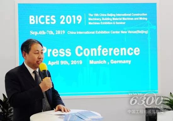 2019年4月9日,以“智聯(lián)天下,綠繪未來”為主題的第十五屆中國(北京)國際工程機(jī)械、建材機(jī)械及礦山機(jī)械展覽與技術(shù)交流會(簡稱“BICES 2019”)新聞發(fā)布會在德國慕尼黑bauma展上隆重召開。