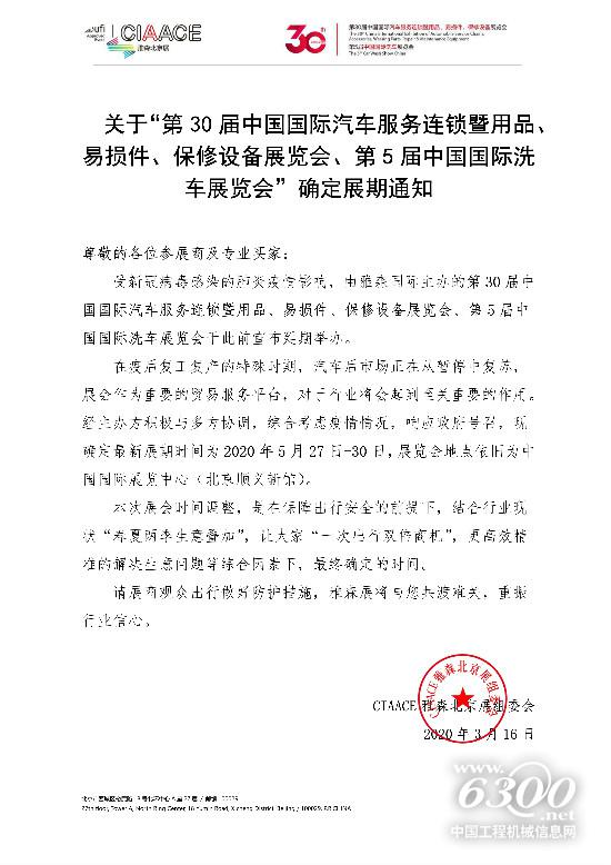 受新冠病毒感染的肺炎疫情影響,由雅森國(guó)際主辦的第30屆中國(guó)國(guó)際汽車服務(wù)連鎖暨用品、易損件、保修設(shè)備展覽會(huì)、第5屆中國(guó)國(guó)際洗車展覽會(huì)于此前宣布延期舉辦。