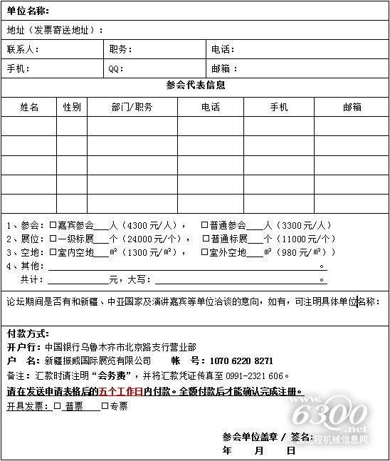 請詳填此表傳真至0991-2321606,并聯(lián)系工作人員。(如此表不夠填寫,請自行復(fù)?。?/p>