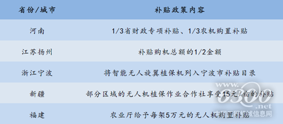 各地出臺(tái)的植保無人機(jī)補(bǔ)貼政策