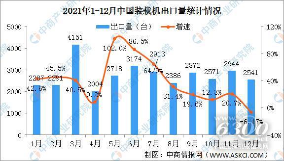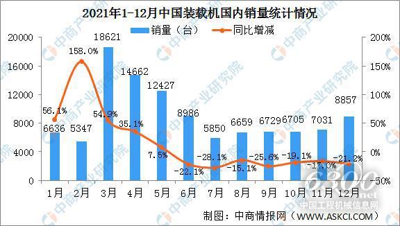 據(jù)中國工程機(jī)械工業(yè)協(xié)會對22家裝載機(jī)制造企業(yè)統(tǒng)計,2021年12月銷售各類裝載機(jī)8857臺,同比下降21.2%。其中:3噸及以上裝載機(jī)銷售7729臺,同比下降26.1%。總銷售量中國內(nèi)市場銷量6316臺,同比下降26%;出口銷量2541臺,同比下降6.17%。