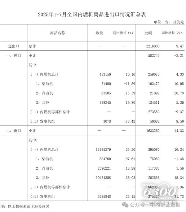據(jù)海關(guān)總署數(shù)據(jù)整理,2026年1-7月內(nèi)燃機(jī)行業(yè)進(jìn)出口總額221.6億美元,同比增長(zhǎng)9.47%,其中,進(jìn)口58.27億美元,同比增長(zhǎng)-2.21%,出口163.33億美元,同比增長(zhǎng)14.33%。