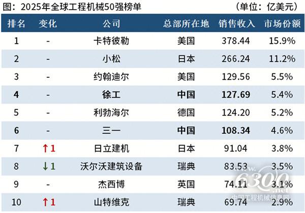 01 2025全球工程機(jī)械制造商前10企業(yè),占據(jù)全球市場份額61.14%